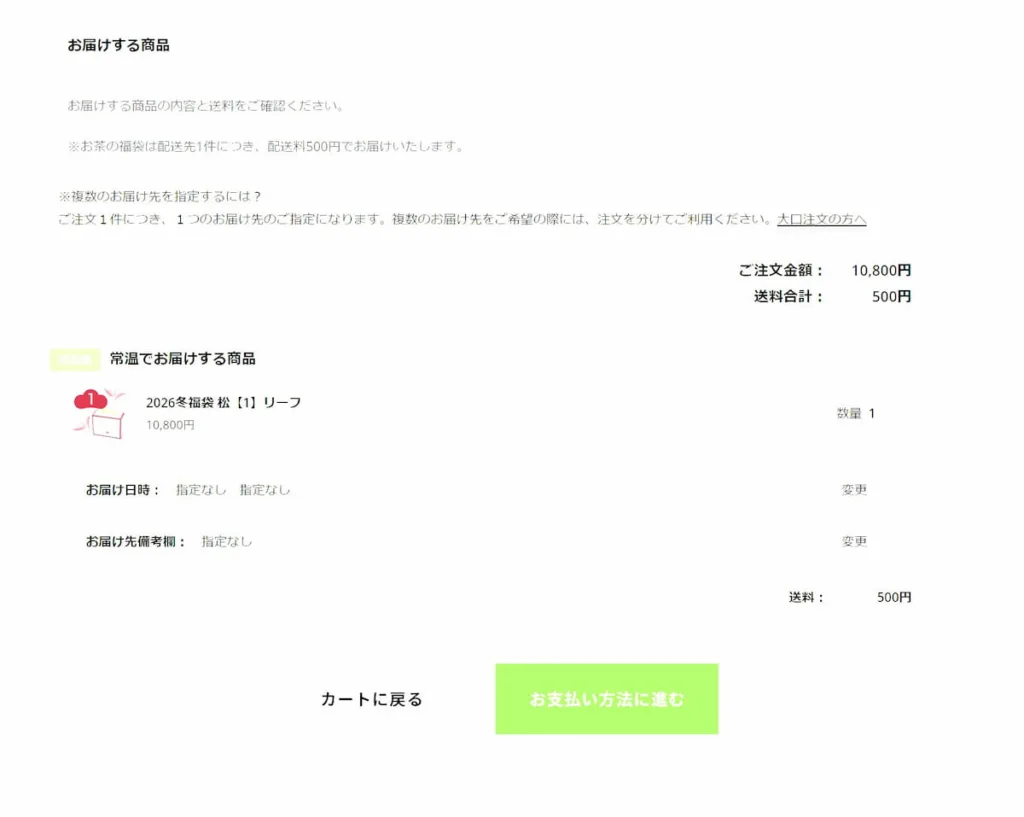 2025年11月11日のポッキーの日に早速「2026冬福袋 松リーフ」10,800円を注文してみました!